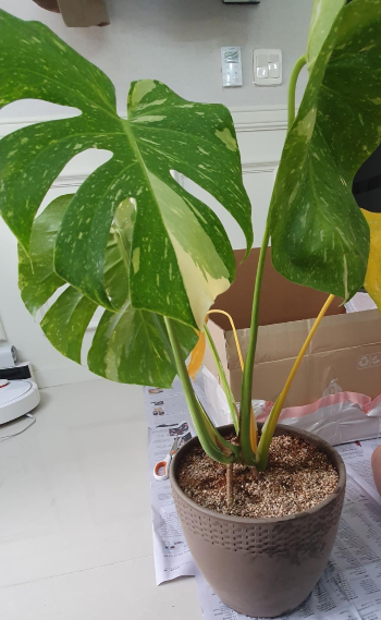이 녀석 안타깝게도 상태가 안 좋아서 지금 눈물을 머금고 수경재배를 위해 3등분 해놓은 상태다. 이건 다음 포스팅에서 자세히 다루겠다. 마지막 녀석은 가장 몸값이 비싼 몬스테라 보르시지아나 알보 바리에가타! 여기서 등장하는 알보란 단어는 하얗다는 의미이다.
