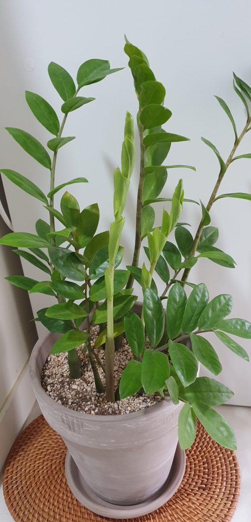 결혼하고 여러 번 집들이를 하기도 했고, 여러 번 초대받기도 했는데, 내가 받은 선물 중에 가장 맘에 드는 게 바로 금전수였다.특히 결혼하고 첫 집들이를 하는 신혼부부의 경우 화분을 매우 좋아하는 식물 러버가 아닌 이상 처음 집을 장만하고 기본적인 가구/가전/인테리어를 하고 첫 살림을 꾸려나가는 정신없는 상황에서 식물을 구입하여 키워보겠다는 생각을 하기가 쉽지 않다.